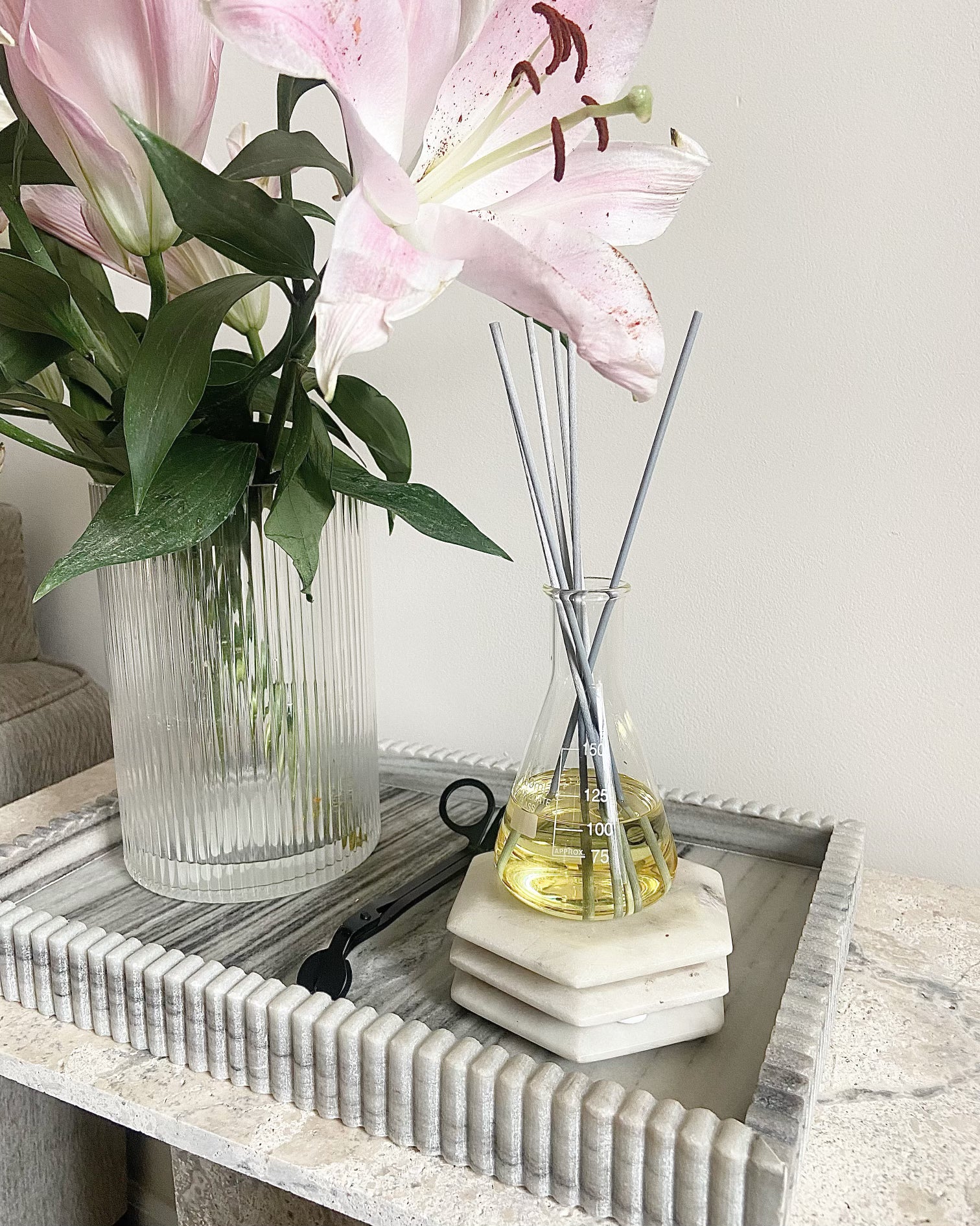 Unique diffusers in reusable erlenmeyer flask with several different unique scents.